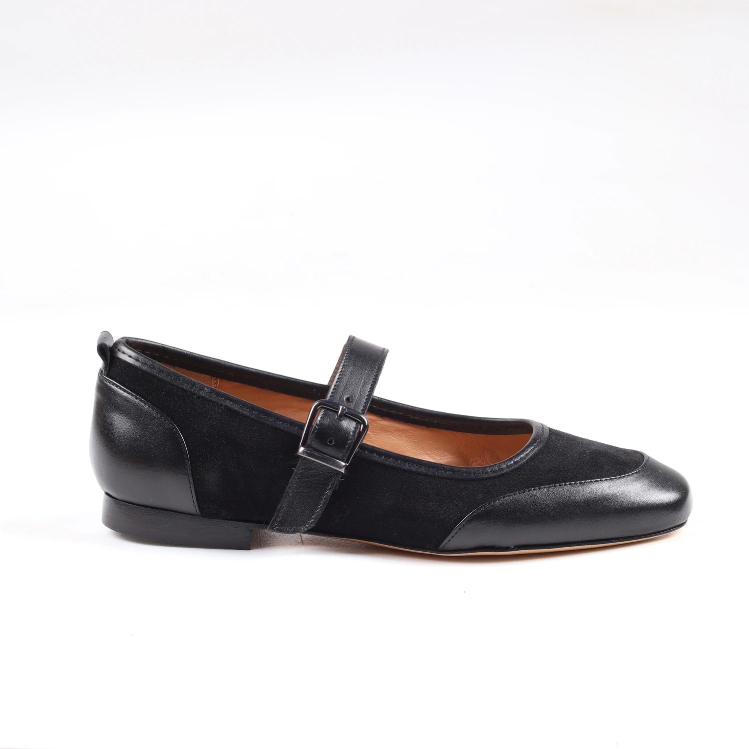 A modern take on the timeless mary Jane and ballerina flats. Featuring a rich blend of smooth leather and soft suede leather, these flats add a refined, feminine touch to any look.